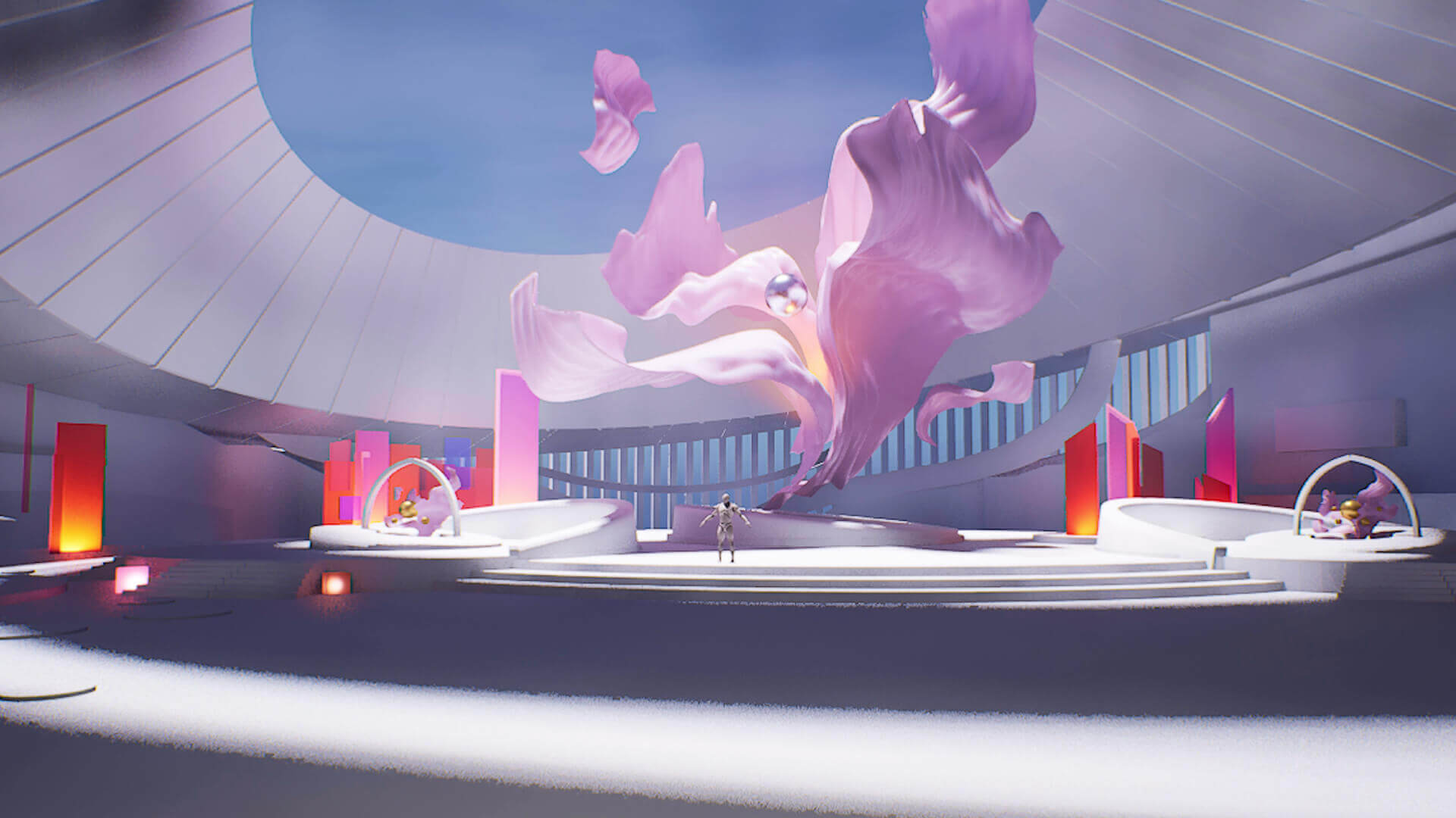 Atlas的团队尽心竭力,在玩家穿行的虚拟世界中重现了音乐视频CG画面的外观和感觉。见过音乐视频中的数字Aya以及由UE5构建的环境后,通常来说,玩家会期待在《堡垒之夜》中看到的更加逼真的外观,因此,团队必须深入研究《堡垒之夜》创意模式的工具集,将两者更好地匹配起来。